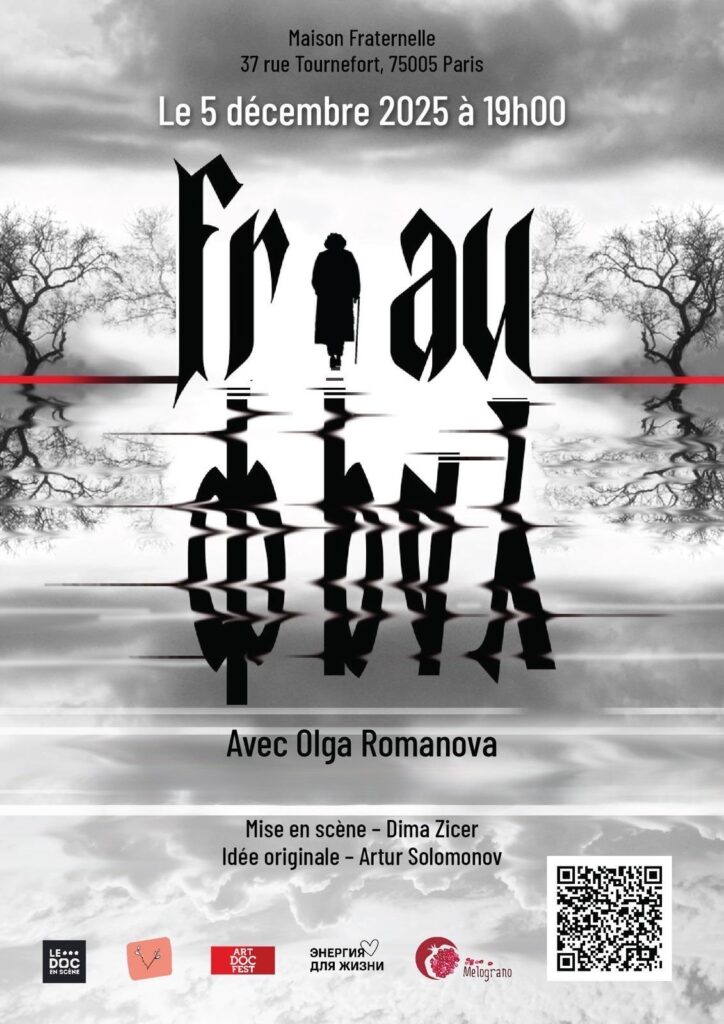 Le spectacle de Dima Zicer et Olga Romanova est créé à partir d’entretiens menés par le dramaturge Artur Solomonov avec une femme allemande âgée qui, à l’époque, avait soutenu le nazisme et Hitler. La pièce établit des parallèles entre le fascisme allemand et l’époque actuelle. SPECTACLE EN RUSSE SANS TRADUCTION
